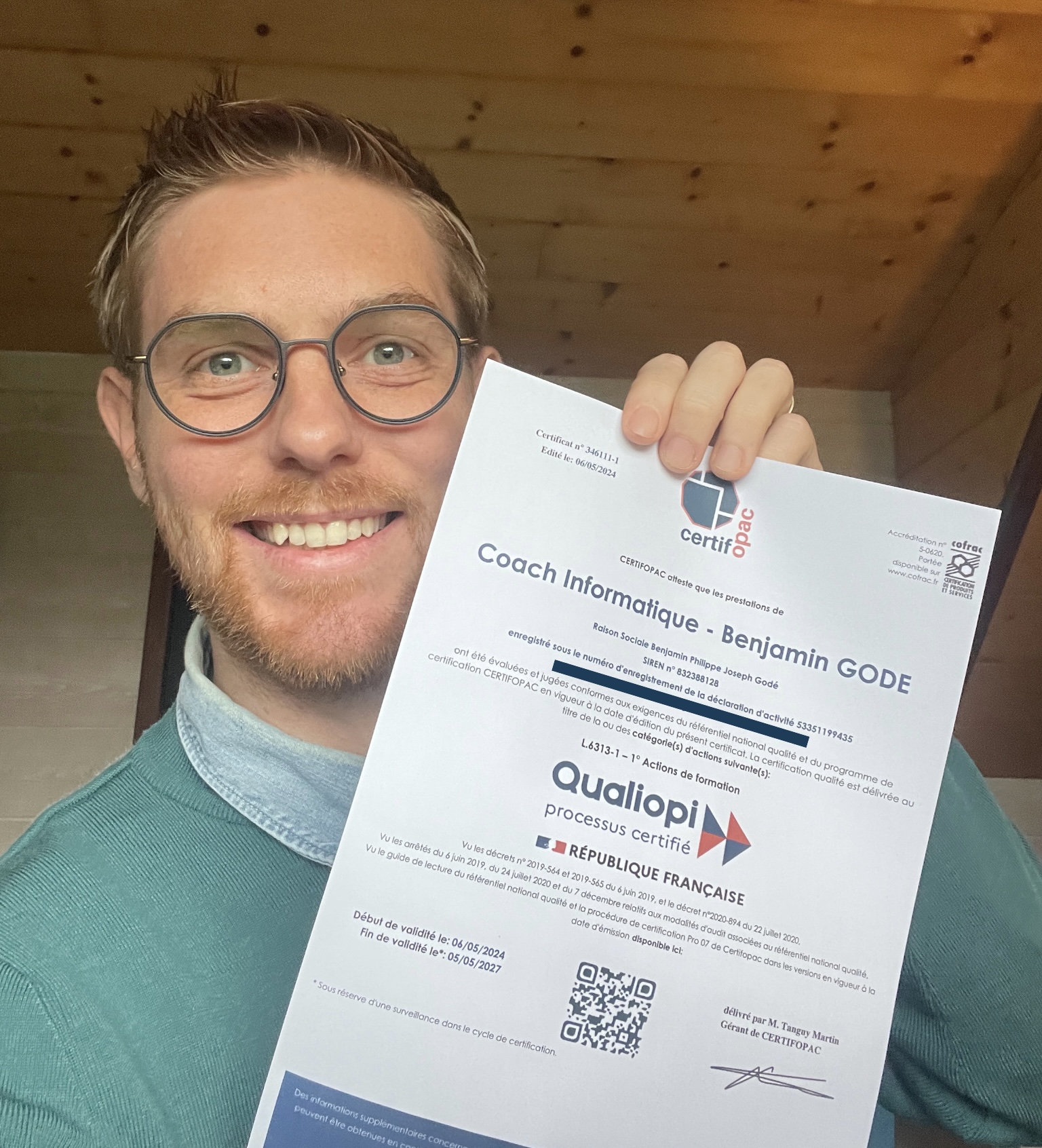 Je suis certifié Qualiopi depuis le 06/05/2024.