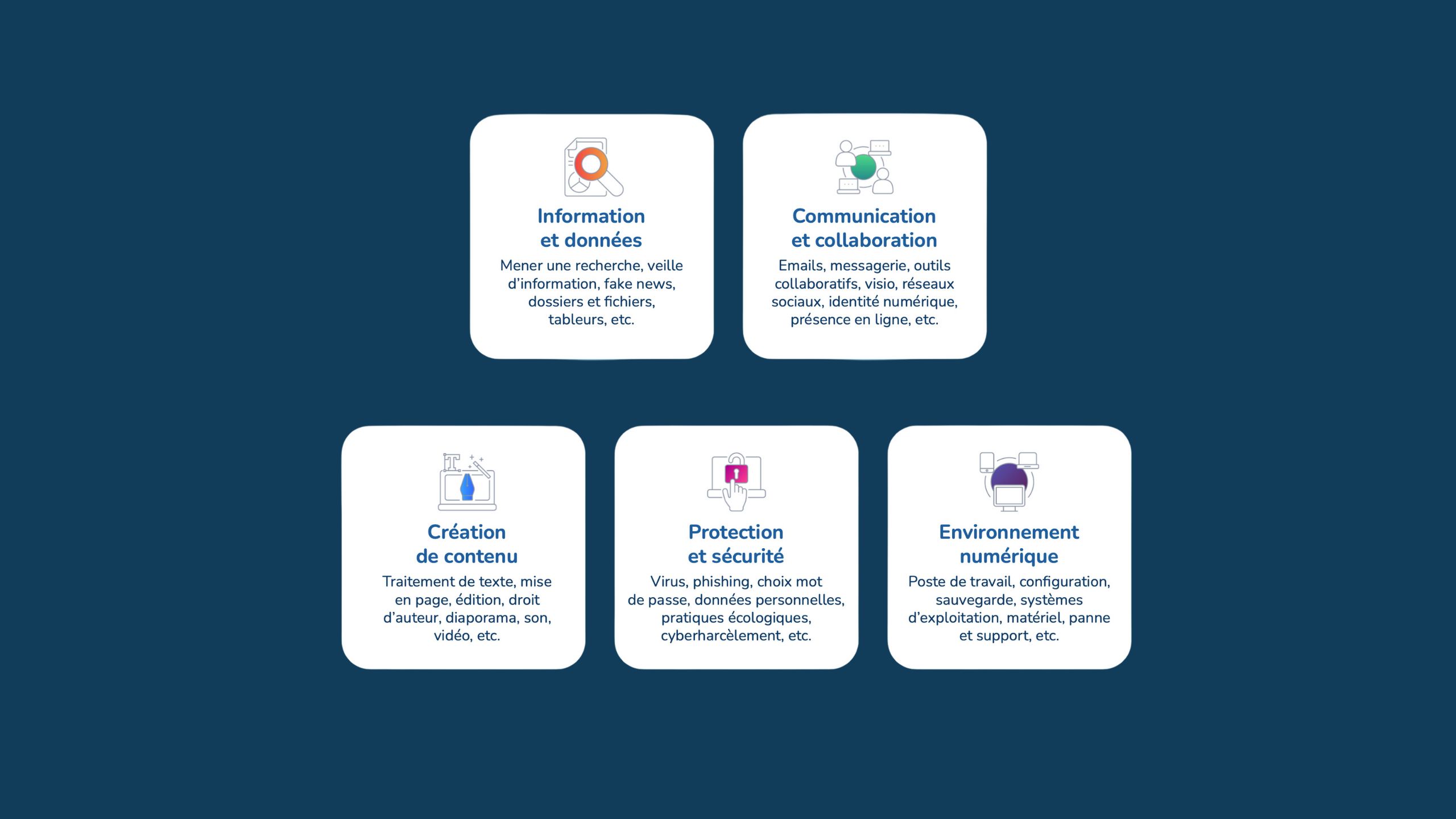 Cette formation s’adresse à toute personne souhaitant maîtriser son environnement numérique, développer ses compétences du numérique.