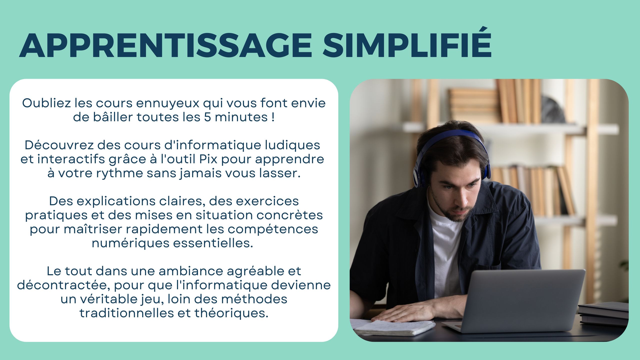 Cette formation de 35h s’adresse à toute personne souhaitant maîtriser son environnement numérique, développer ses compétences du numérique.